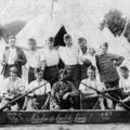 Neerlands Laatste Hoop. Een groep soldaten waaronder enkele Belfeldse militairen gefotografeerd in Harskamp in de generaal Winkel kazerne 1931. Knielend derde van links is Leike Reinders, en knielend tweede van rechts Frans Gitmans. |