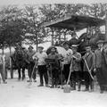 Begin jaren dertig werd deze foto gemaakt bij de aanleg van de Napoleonsweg aan de westkant van de Maas. Geheel rechts Niemans Nolles en vijfde van rechts Liëne Wullem uit Reuver |