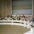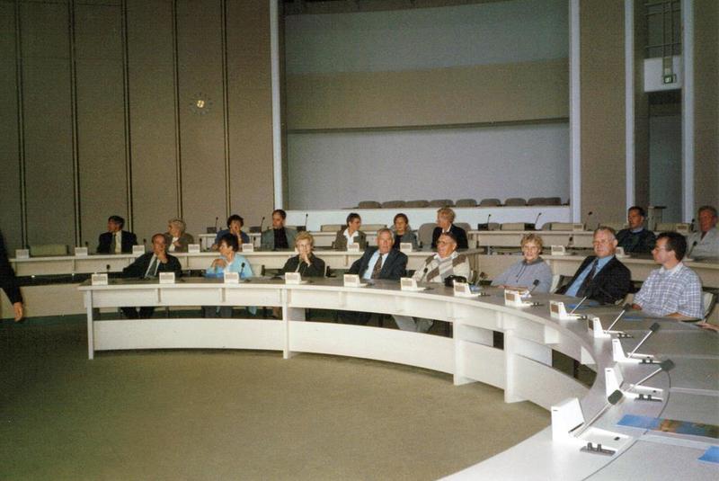 De C.D.A. afdeling Beesel-Reuver tijdens een uitstapje naar het gouvernementsgebouw in Maastricht. Op de foto zitten de leden in de statenzaal. |