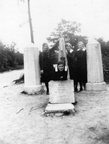 Onderwijs | Uitstapje met de leerlingen van de kweekschool uit het H. Hart Klooster naar Zuid-Limburg. Op de foto bij het Drielandenpunt in Vaals. | Viergrenzenweg 230 | Vaals | 1933 | ||||