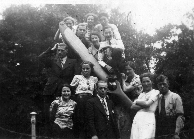 De groep vrienden uit Belfeld bracht in 1939 een bezoek aan het vliegtuigmonument in Vaals. Op de foto staan o.a. Pierre Heeskens, Peeters, Sjang Janssen, Anny van de Munckhof, Tiel van de Munckhof. |
