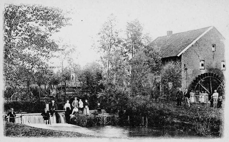 Molens | De watermolen in werking .Het molengebouw, eigendom van Hillenraedt, werd in 1786 gebouwd en in 1788 in bedrijf genomen. De eerste pachters van de molen waren Johan Ickenroth en Gerard Derex. De pachtsom bedroeg het voor die tijd aanzienlijke bedrag van 3000 gulden. | Molenstraat 14 | Swalmen | 1925 | ||||