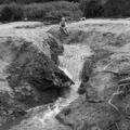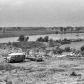 Monding van de Schelkensbeek. De Maas staat zeer laag omdat de stuwen vanwege onderhoud zijn gestreken. Dat was in juli 1969. De persoon op de foto is Maria van Gassel-Goossens. Deze foto is afkomstig uit het rapport "Het landschap van Beesel en Reuver", (1972) Boskoop. Auteur H.P.M. van Gassel. |