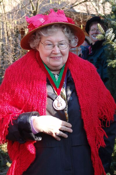 Carnaval | Johanna Cox laat haar Nepomuk onderscheiding zien die ze net in ontvangst heeft genomen. | Swalmen | 2005 | |||||