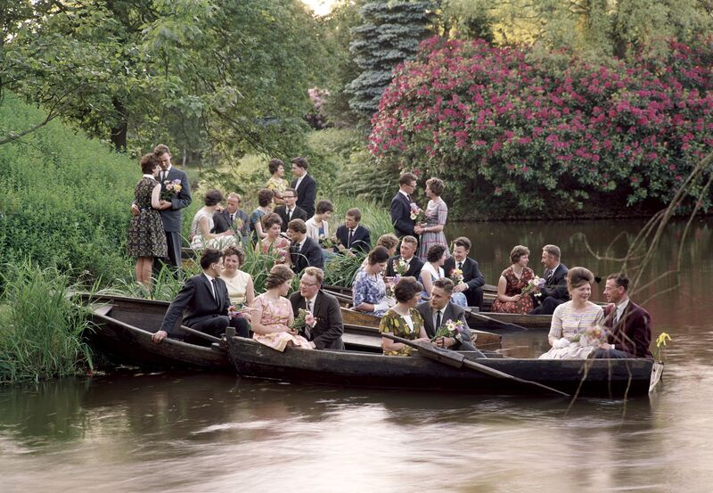 Diversen | Vrijgezellenvereniging Swalmer Vrijers oefent in Beesel voor de dag van het 'huwelijksbootje'. In de twee roeiboten zitten 24 stelletjes. Eén vrouw uit Beesel (midden) moet het zonder vrijer doen. Haar minnaar zit op Nieuw-Guinea. Nederland. | Rijkel | Rijkel | 1962 | ||||