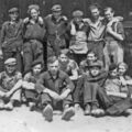 Foto welke is gemaakt voor de fabriek waar Piet Rovers werkte (voor de Duitsers) in Kaldenkirchen in 1944. Achterste rij (vlnr) 01.Baer Franssen (van Keun) 02.Piet Vervoort, Belfeld 03.nog onbekend 04.Michel Dahmen ?? 05.Sjeng Vervoort, Belfeld 06.Thei Beijers, Belfeld Voorste rij 01.Herm Beijers, Belfeld 02.Harie Verstappen 03.? Simons (de Sjlaopm ts) 04.Wim Verstappen 05 NN 06.Piet Rovers 07.Frits Witjens |