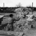Fabrieken / Bedrijven | Man schept bakklei in een kruiwagen bij de aardewerkfabriek Sint Joris te Beesel. | Sint Jorisstraat 54 | Beesel | 15-8-1957 | 1957 | |||