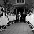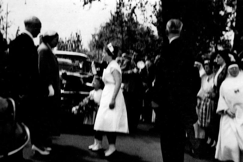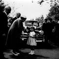 Gebeurtenissen | Op 14 mei 1956 was koningin Juliana op bezoek in Reuver. De koningin bracht onder andere een bezoek aan de nieuwe huishoudschool. Henriette Meusen staat klaar om de koningin een bos bloemen aan te bieden. | Parklaan 8 | Reuver | 14-5-1956 | 1956 | |||