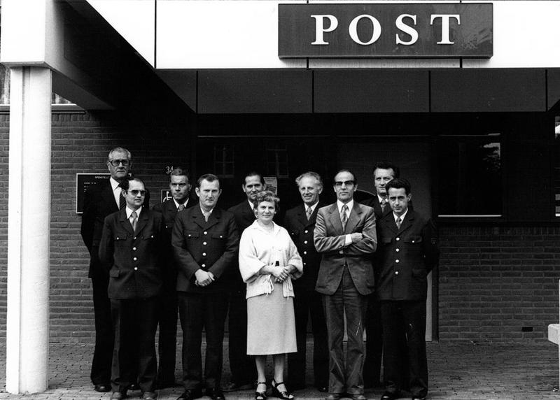 Het personeel van het postkantoor in Tegelen, hier gefotografeerd voor het postkantoor in Tegelen. |