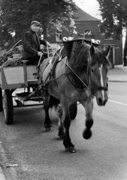 Vervoer overig | Graad Schoolmeesters samen met paard en wagen waarmee hij de kolen rondbracht door Reuver en omstreken. | Beukelstraat | Offenbeek | |||||