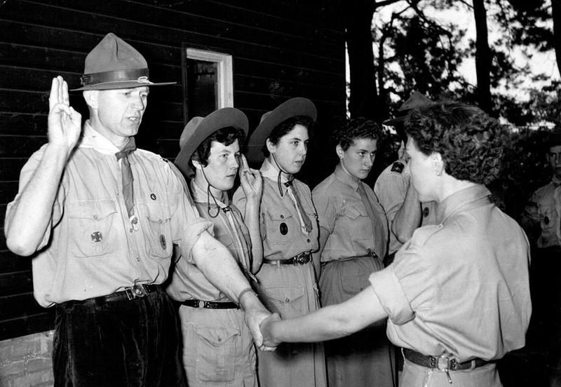 Verenigingen en organisaties | Wies Rievers legt de eed af bij de Don Bosco Verkenners met verder (v.l.n.r.) Herman Douben, Lies Hodselmans, Tiny Lemmen en Gon Janssen. | Belfeld | 1960 | |||||