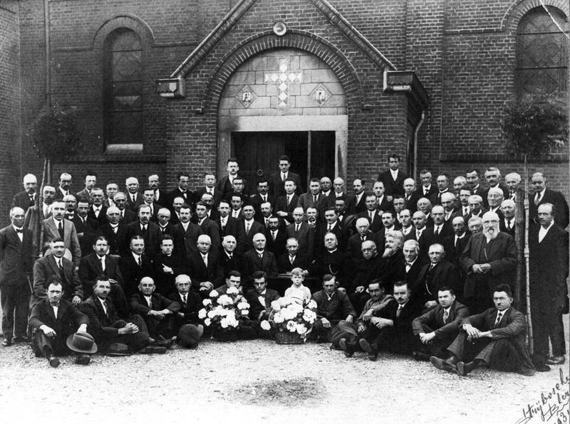 Leden van de Boerenleenbank in 1931. De foto is genomen voor de oude Urbanuskerk. Van links naar rechts, Zittend (op grond): Tinus Derks, Kuüb Geurts, Sjeng Beyers, Henke Koopmans, Jan Simons, H. Thijssen, Piet Timmermans, Wullum Hendriks, Theike Derks, Frits Boonen, Kuüb Huberts, Sjang Vervoort. Zittend (op stoel): Lein van de Munckhof, Frans Geraets, Wullum Boonen, kapelaan Spee, Jacobus Smeets, J. Hoezen, burgemeester Janssen, Piet Kurstjens, pastoor Hermens, rector Bongaerts, NN, Wullum Meer ... |
