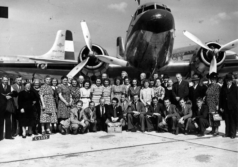 Het spoorwegpersoneel maakte een uitstapje naar Schiphol in 1946. Op de foto staan o.a. : Familie Ernst, Derks Willem Opstals en echtgenote, dames Bovendeerd, Engelen en de heren Thones, Engelen, Schouwenberg, Havens en van der Biesen. |