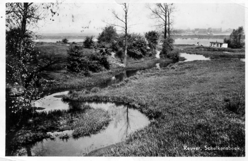 Natuur | Schelkensbeek. In de verte op de Maas een woonboot? | Rijksweg | Reuver | 1965 | ||||