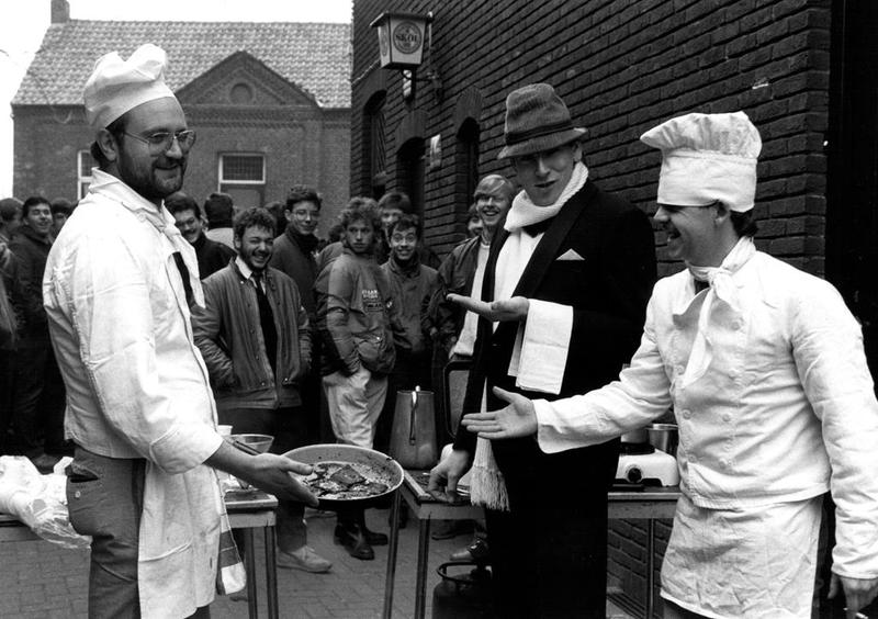 Carnaval | Een warm onthaal voor de kaartjeskopers van de bonte avonden in Beesel (1986) | Markt | Beesel | 1986 | ||||