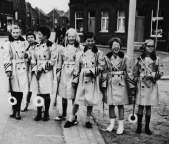 Brigadiertjes in Swalmen. Van links naar rechts : Gemma Geurts, Ans Cox, Gerd Engelen, Annie van Keeken, Bep Crompvoets, Suzan Smeets, Ria Doensen Foto met dank aan Margriet Jacobs- Timmermans |