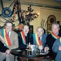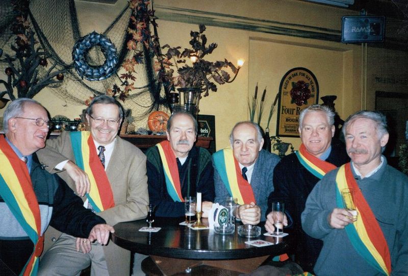 De Aaj Buujels uit Reuver, ofwel de voormalige Raad van Elf, van Vasteloavend Vereiniging de Windjbuujels. Anno 1999 telde de groep nog 8 leden. Joep Hermans, Sjra Peeters, Ger Peulen, Jeu Steeghs, Sjra Vincent, Coen Janssen en Boy Dohmen en Lex Dingelstad. Op de foto staan Sjra Peeters, Coen Janssen, Sjra Thijssen, Lam Boonen, Bèr Geerlings, Boy Dohmen. |