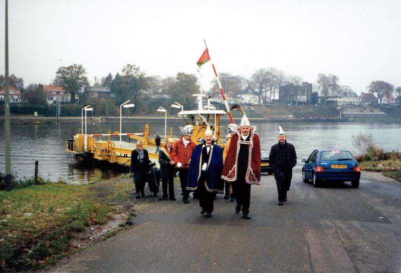 De Aaj Buujels uit Reuver, ofwel de voormalige Raad van Elf van Vasteloavend Vereiniging De Windjbuujels, onthulden (ter gelegenheid van hun 33-jarig bestaan) de gedenkplaat bij de veerbel. Op de foto zien we de prinsen van Reuver (Oscar I Gijzen) en Kessel met de genodigden van het veer af komen. |