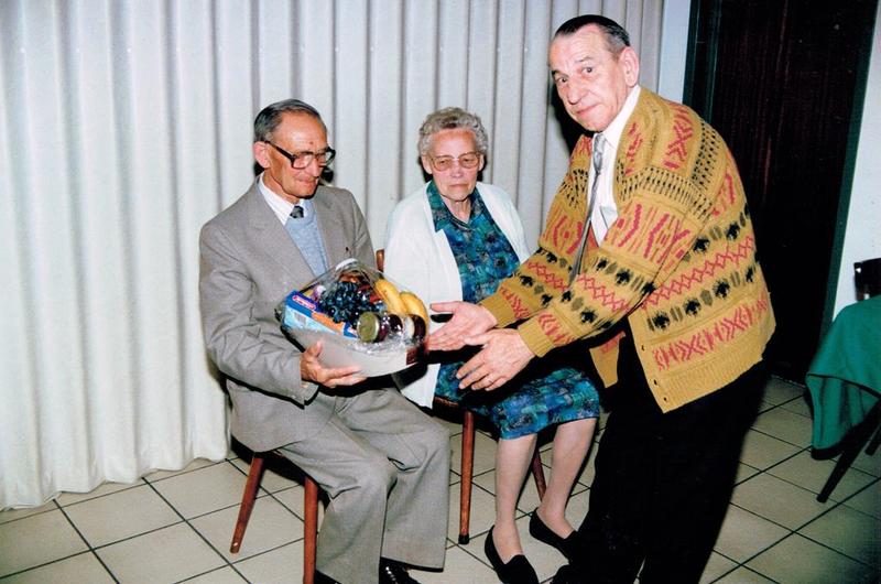 Verenigingen en organisaties | Fien Sloesen, Jan Theunissen en Sjra de Rijck worden gehuldigd door de Sociëteit voor ouderen "St. Jozef" Reuver vanwege hun koperen jubileum. | Reuver | 1994 | |||||