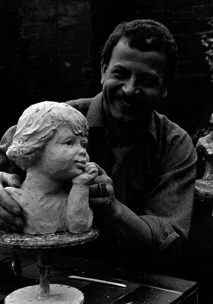 Kunstwerken | Geert Kunen bezig met het maken van een buste. | Wilhelminastraat 20 | Belfeld | 1988 | ||||