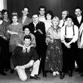 Stichting Toneelgroep Reuver. Een aantal leden poseert op de trap voordat ze het door Paul Bloemen vertaalde toneelstuk "Sjlummeriken" (oorspronkelijk "Dwazen" van Neil Simon) op voeren ter ere van het 50 jarige bestaan van de vereniging. |