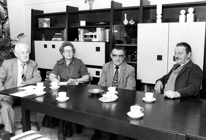 In 1979 vierde Stichting Toneelgroep Reuver haar 40-jarig jubileum. Van links naar rechts: Harrie Steeghs, Mien Cremers - Julicher, Giel Hillekens en Keun Franssen. |