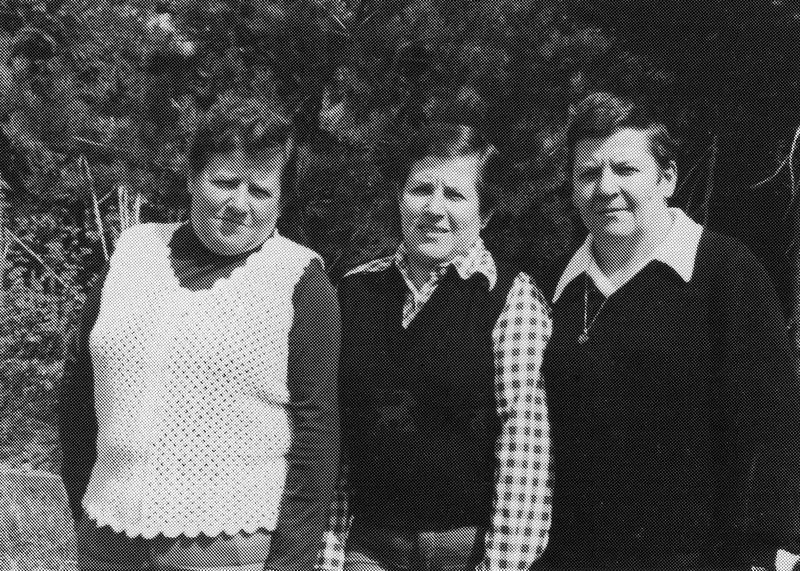 De drie zussen Theunissen zagen samen Sara. Van links naar rechts: Leen Theunissen, Truus Knops - Theunissen en Annie Franssen - Theunissen. Geheel rechts moeder Marie Theunissen - Wilms. |