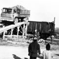 In de zestiger jaren werden de bieten per auto vervoerd naar het raccordement (spooraansluiting) van Laumans in de buurt van De Steenbok (nu Jalema). Hier werden ze overgeladen. Rechts op de rug gezien Sef Cremers, die namens de gemeente toezicht hield. De 2 kinderen zijn van stationschef Vogels. De inrichting is eigendom van COVAS-coöperatie van suikerbietentelers. |