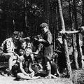 De verkennersgroep Sint Lambertus uit Reuver begin jaren vijftig op zomerkamp in Helenaveen. Rechts kapelaan Delhoofen. |