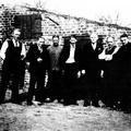 Buurt Noord bij elkaar achter het schuurtje van boerenbedrijf Schoolmeesters aan de Rijksweg in Reuver. Van links naar rechts: Jac. Schoolmeesters, Lei Rutten (schoenmaker), Wiel Schoolmeesters, Wim Gommans, Hannes Gommans (kleermaker), Sjra Schoolmeesters (beheerder boerenbond en Boerenleenbank) en Piet Schoeren. |