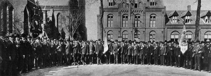De Landstorm in de jaren na de Eerste Wereldoorlog. Op de foto staan: Beneden geheel links: Sjang Metsemakers, tweede rij links Stevens (uit Rijkel), midden Piet Huijbers (van de wasserij aan de Wilhelminalaan) en geheel boven Kuüb Vullers (deze had een sigarenfabriekje aan de Wilhelminalaan toen nog Spoorstraat geheten). |