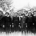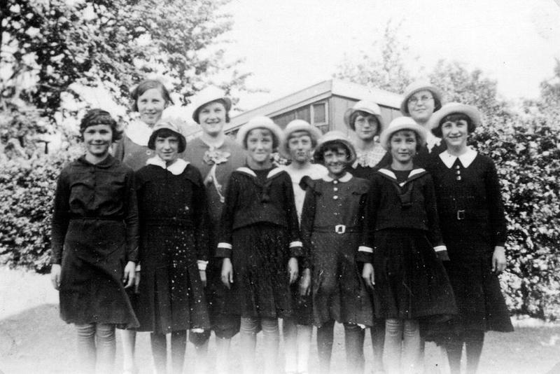 Groepsfoto van een aantal Reuverse meisjes rond 1940. Op de foto staan : Griet Huibers, Mien Dorssers, Tonia Caris, Christina Dorssers Truus Mobers, Mia Dorssers en enkele meisjes waarvan de namen niet bekend zijn. |