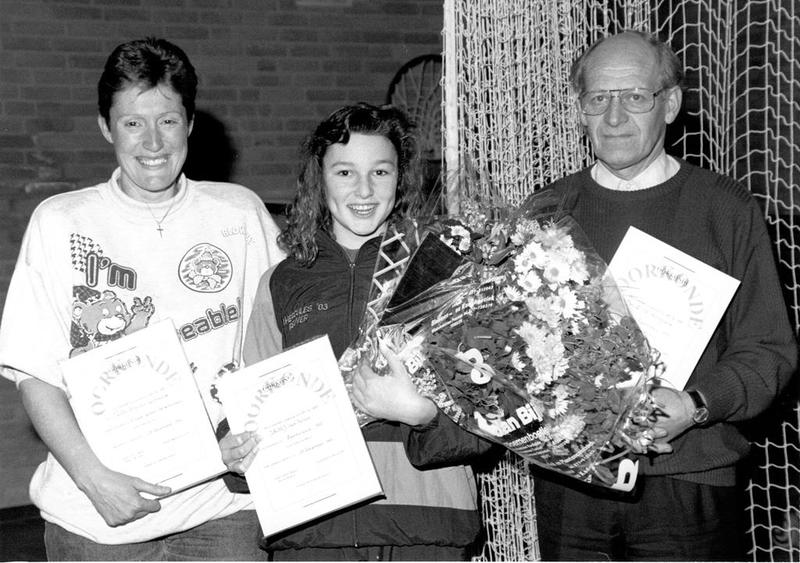 Verenigingen en organisaties | Sportpersoon achter de schermen Mevr. P. Schoute-Gommans van V.V. Reuver, sportvrouw van het jaar Janneke van Herten van S.V. Hercules '03 en sportman van het jaar Lei Schrijvers van V.V. Reuver gezamenlijk op de foto. | Bösdaellaan 1 | Reuver | 1992 | ||||