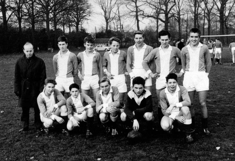 Voetbalclub Blauw Wit speelde haar wedstrijden op het braakliggend terrein tussen de Prins Hendrikstraat en de toenmalige Groenstraat. Op de foto staan v.l.n.r. Achterste rij: Lei Nottelman, Sjra Litjens, Mathieu Vossen en Fons Verstegen. Op de derde rij: Piet Janssen, Hans Goertz en Jan Heldens Op de tweede rij: Fon Verstegen, Frans Janssen en Theo Vullers op de eerste rij: Joep Verstegen, Cor of Jan Janssen, Paul Thijssen |