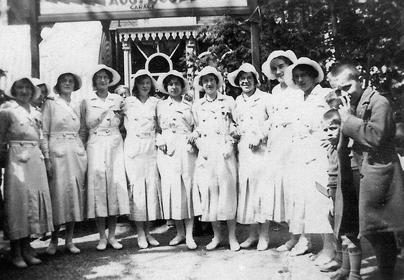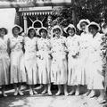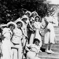 Wandelclub 't Haasje. In de jaren dertig heeft in Reuver een wandelclub bestaan die werd opgericht door de heren Heesen en Schweitzer. De club bestond uit een aparte dames- en herenafdeling. Van de dames afdeling waren onder anderen lid: Mia Rijnders, Lena Verstegen, Johanna Niesen, Gerda Janssen, Mia Heesen, Peeters en Gommans (echtgenote van Ruiten). De foto werd gemaakt tijdens een wandeltocht in Blerick. |