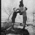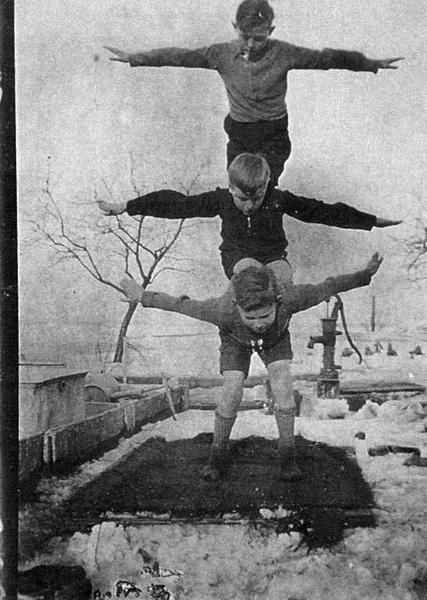 Leden van S.V. Hercules '03 tijdens het uitoefenen van hun gymnastiekkunst. |