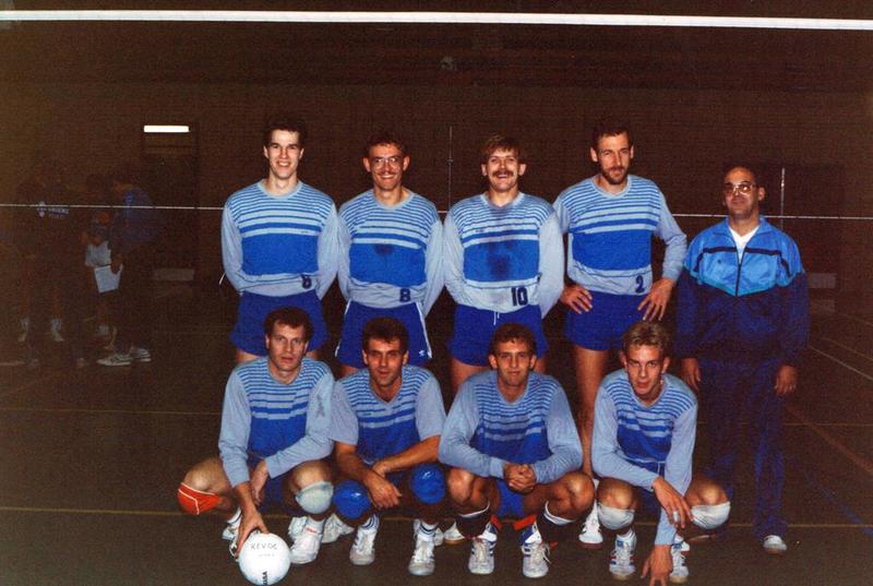 Het heren 1 team van volleybalvereniging Revoc uit 1988. Van links naar rechts Staande: Rob Jetten, Hans Niessen, Jan van der Weide, Nico Beerends en trainer-coach Math Bongaerts. Gehurkt: Peter Janssen, Leon Lenssen, Marc Denessen en Ruud Aspers. Het team promoveerde dat jaar naar de promotie-klasse wat de hoogste districtsklasse is. |
