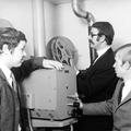 In de zestiger - zeventiger jaren was in Reuver de filmkring "C-66" actief. Op de foto zien we Fons Verdonck, Huub Timmermans en Piet Heldens bij de voorbereiding van een voorstelling in het Luxor theater in Reuver. |