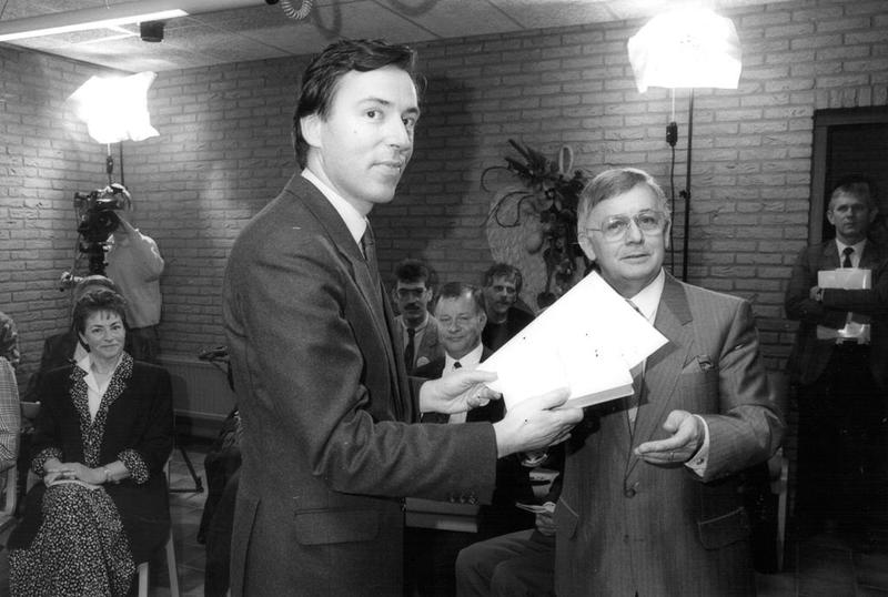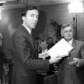 Verenigingen en organisaties | Voorzitter A Verfürth van Omroep Maas & Grens overhandigt het verzoek voor een lokale zender aan minister Eelco Brinkman. | Reuver | 1988 | |||||