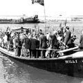 Hengelconcours aan de Maas in Reuver georganiseerd door hengelsportvereniging HSV De Forel. De deelnemers worden per boot naar de overkant van de Maas gebracht |