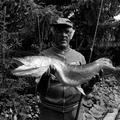 Verenigingen en organisaties | Sir Lenssen van hengelsportvereniging HSV De Forel poseert met een snoek van ruim een meter en een gewicht van 17,5 pond die hij in de visvijver Roversheideplas heeft gevangen. | Sebastopol 1 | Offenbeek | 1983 | ||||