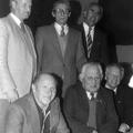 Hengelsportvereniging HSV De Forel heeft zes jubilarissen in 1986. Van links naar rechts: staande: J. Meusen (25 jaar lid), P. Timmermans (40 jaar lid), Sir Lenssen (40 jaar lid). knielend:H. Bomen (25 jaar lid), W. Feuler (40 jaar lid) en P. Beijk (25 jaar lid) |