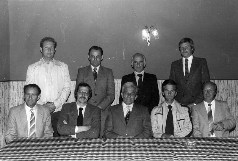 Het bestuur van P.D.V. Duivensport Reuver bijeen bij café Keuben in 1981. Van links naar rechts bovenste rij: Pierre Kuipers, Jos Houwers , Jan Nabben en Herm Geerlings onderste rij: Wiel Blomen, Herm Lemmen, Piet Geerlings, Jan Coenders, Piet Hendriks en Nabben |