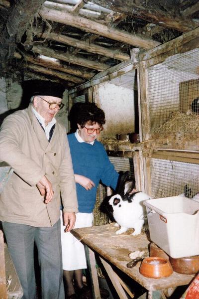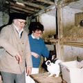 Konijnfokker Jos Willems was in 1995 al zestig jaar lid van de Nederlandse Konijnen Bond. Kleindierensportvereniging Reuver feliciteert hem tijdens zijn jubileumfeest op 4 november 1995 in manege de Vossenkuil. |