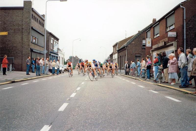 De Olympia's Tour van 1994 (Valkenburg - Reuver) fietst Reuver binnen. Op de foto slaan ze vanaf de Rijksweg Den Roover in (met rechts de schoenwinkel Rutten). |