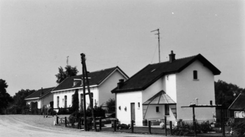 Spoorwegen | Station Belfeld. Op de voorgrond een zgn. arbeiderswoning uit 1865. Nr. 66. Zo‘n woning bevond zich ook bij de spoorwegovergang Bussereind. | Stationstraat 9 | Belfeld | 1976 | ||||