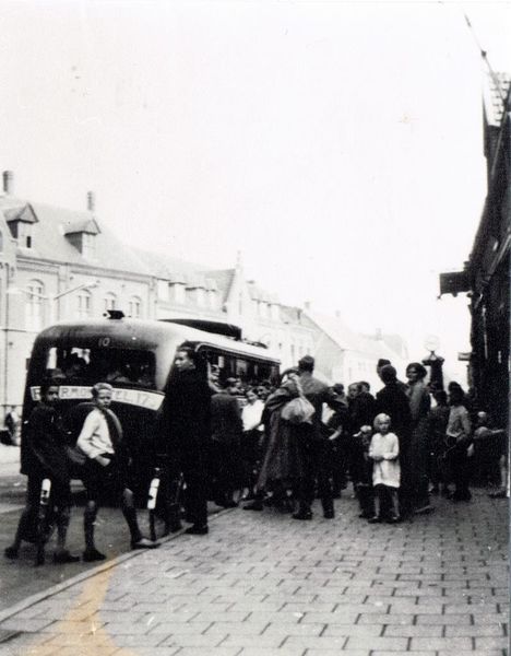 Mobilisatie in 1939. Op de foto vertrekken de Reuverse soldaten ter hoogte van het klooster in de gereedstaande autobus. |