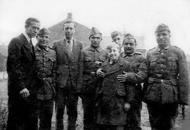 Een groep Georgiërs was gestationeerd in Reuver tijdens de Tweede Wereldoorlog.Op de foto staan ze samen met Reuverse jongeren bij het huis van Simons aan de Keulseweg Van links naar rechts: Piet Vintcent, Hein, Henk Simons, Zariko, Sjra Vintcent, Jan Vintcent (na de oorlog omgekomen bij het ruimen van mijnen), Digram en Abak. |
