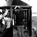 Picknickplaats "De Schans" wordt officieel in gebruik genomen. Burgemeester Nuytens bevestigt de naamplaat op de schuilhut. |