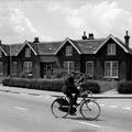 Het kazernegebouw van de Koninklijke Marechaussee met op de fiets Louis de Rijck. Het bouwjaar van de kazerne is 1900. |